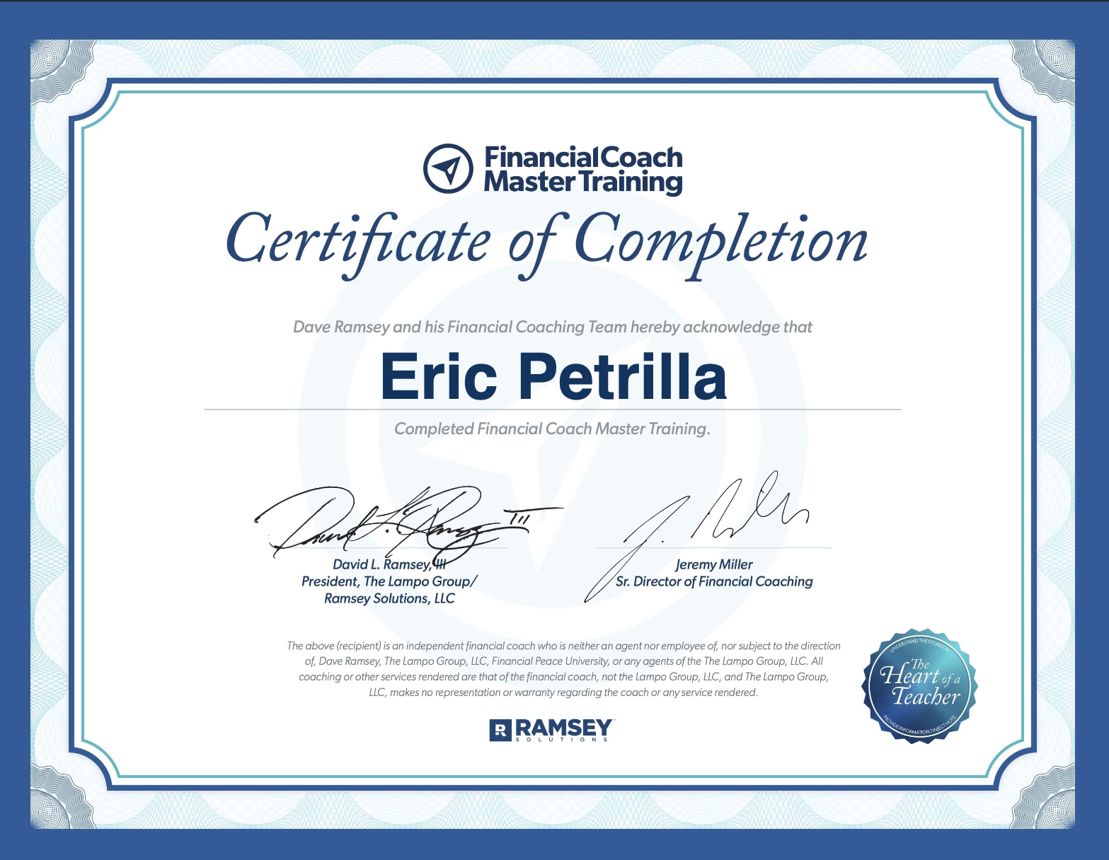 Hi everyone, I'm Eric. Ever since I can remember, I've been obsessed with my finances and focused on making money. When I discovered Dave Ramsey and embraced his approach to paying off debt, it changed my life forever. I made a vow that when I was ready to start my encore career after exiting my construction business, I would teach people how to manage their finances, get out of debt, and guide ambitious individuals on their personal money journey—or help them take the steps to start a small business. By combining my coaching expertise from my past as a swim coach with my business experience, I’ve now merged my two worlds to help you achieve your goals and dreams.